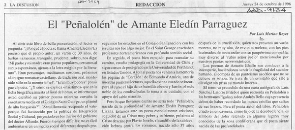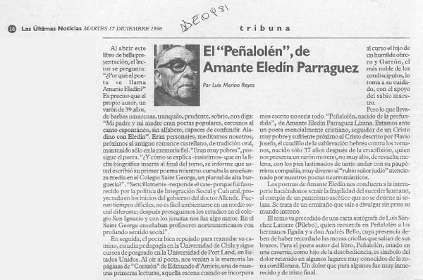 El "Peñalolén", de Amante Eledín Parraguez [artículo] Luis Merino Reyes.