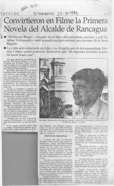 Convirtieron en filme la primera novela del alcalde de Rancagua [artículo].