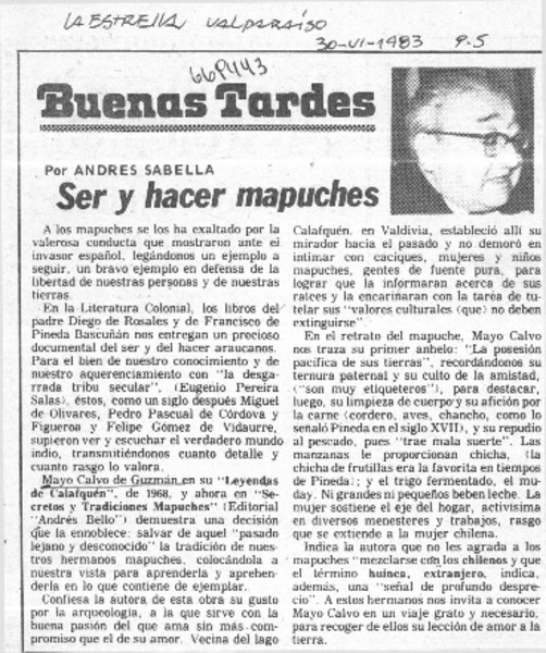Ser y hacer mapuches [artículo] Andrés Sabella.