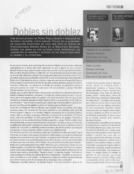Autores chilenos - Latcham, Ricardo A. - Anguita, Eduardo - Zegers Blachet, Pedro Pablo - Eduardo Anguita, páginas de la memoria - Ricardo Latcham, varia lección