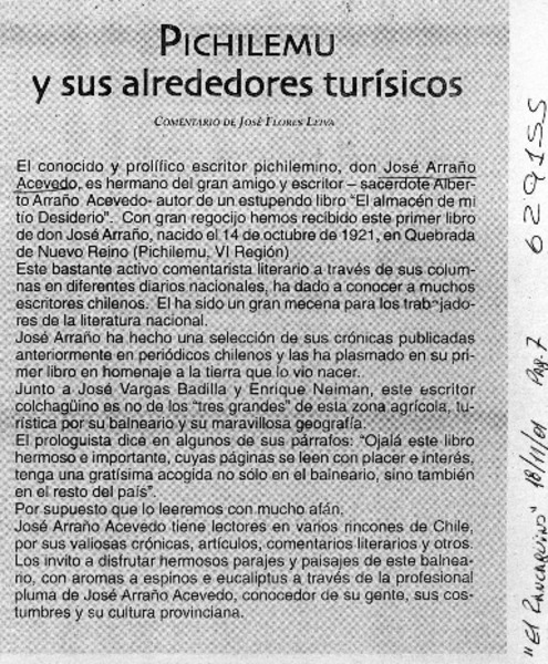 Autores chilenos - Arraño Acevedo, José - Pichilemu y sus alrededores turísticos