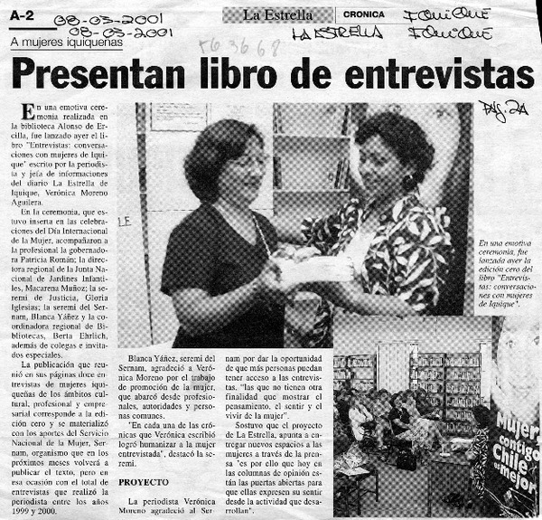 Autores chilenos - Moreno A. Verónica - Entrevista: Conversaciones con mujeres de Iquique