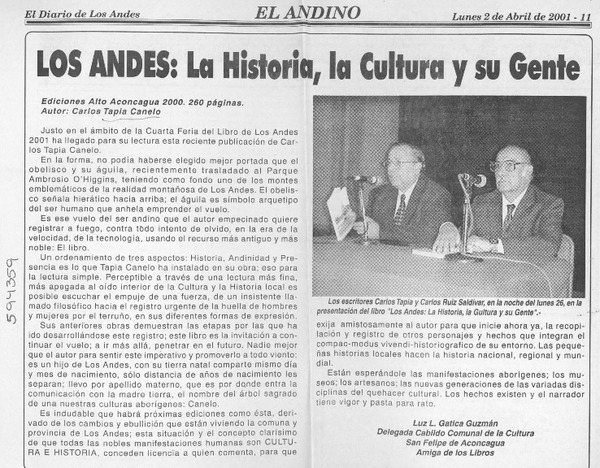 "Los Andes, la historia, la cultura y su gente" [artículo] Ariel Fernández