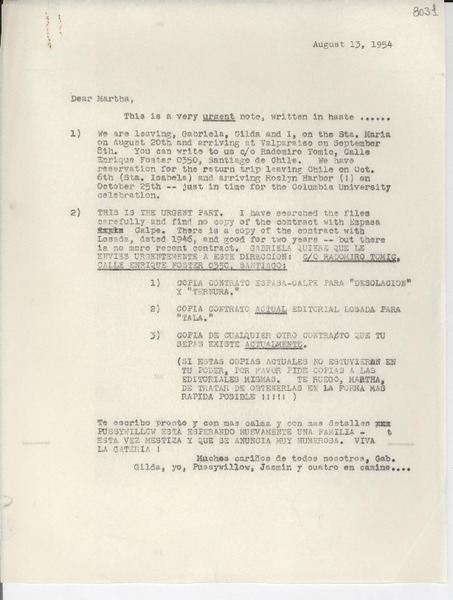Mistral, Gabriela - Manuscritos estadounidenses - Correspondencia