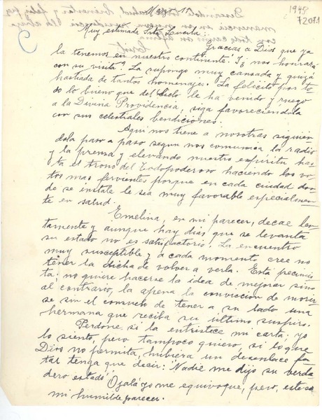 [Carta] 1947 sept. 11, Ovalle [a] Mi recordada y buena Lucila [manuscrito] Cristobalina T. de Ramírez.