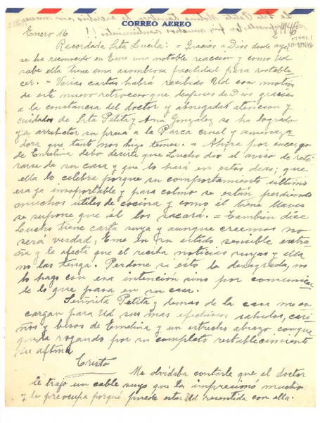 [Carta] 1946? ene. 16, [La Serena, Chile] [a] Lucila [Godoy Alcayaga] [manuscrito] Cristo.