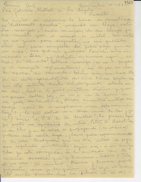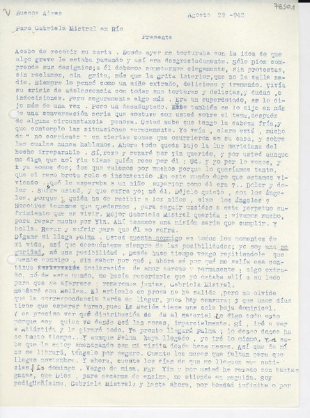 [Carta] 1943 ago. 2, Buenos Aires, [Argentina] [a] Gabriela Mistral, Río, [Brasil] [manuscrito] Martha Salotti.