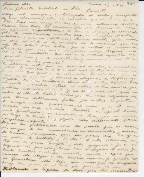 [Carta] 1942 ene. 27, Buenos Aires [a] Gabriela Mistral, Río [de Janeiro] [manuscrito] Martha [Salotti].