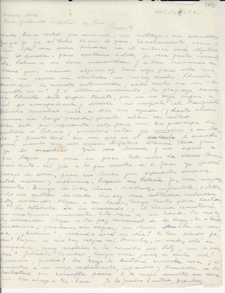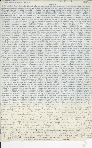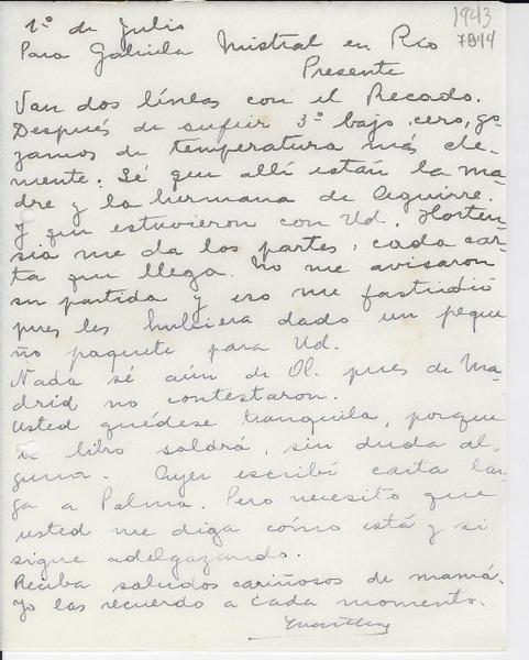 [Carta] [1943] jul. 1, [Buenos Aires] [a] Gabriela Mistral, Río [de Janeiro] [manuscrito] Martha [Salotti].