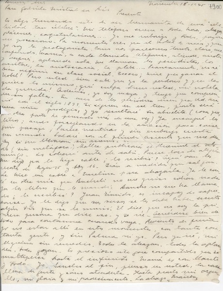 [Carta] 1945 oct. 30, Buenos Aires [a] Gabriela Mistral, Río [de Janeiro] [manuscrito] Martha [Salotti].
