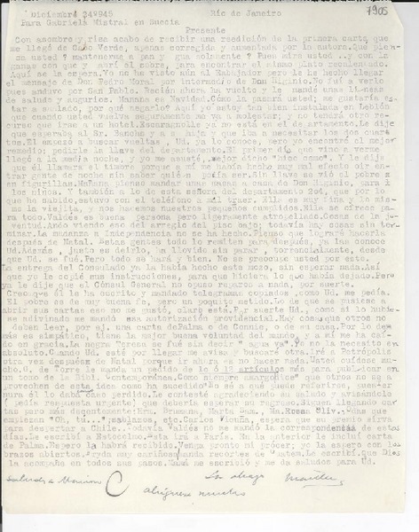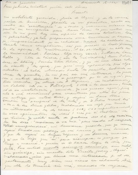 [Carta] 1945 dic. 16, Río de Janeiro [a] Gabriela Mistral, quién sabe dónde [manuscrito] Martha [Salotti].