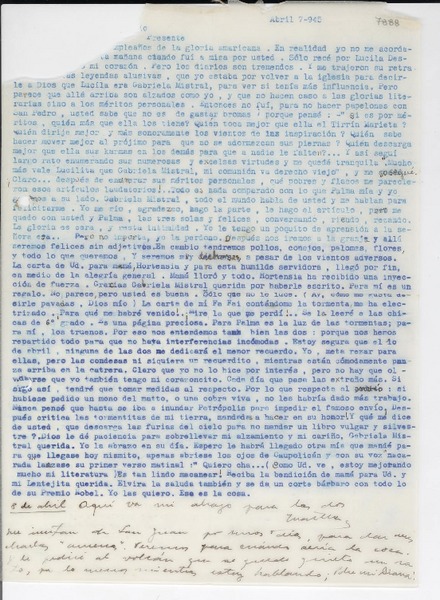 [Carta] 1945 abr. 7 [a] [Gabriela Mistral] [manuscrito] Martha [Salotti].