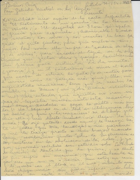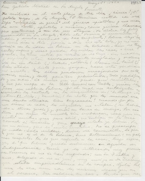 [Carta] 1944 mayo 25, Buenos ires [Aires] , [Argentina] [a] Gabriela Mistral, Rio, [Brasil] [manuscrito] Martha [Salotti].