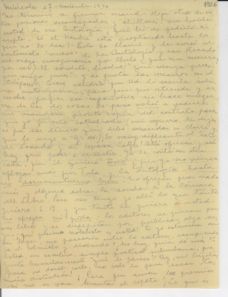 [Carta] 1946 nov. 26, Buenos Aires [a] Gabriela Mistral, Los Ángeles [manuscrito] Martha [Salotti].