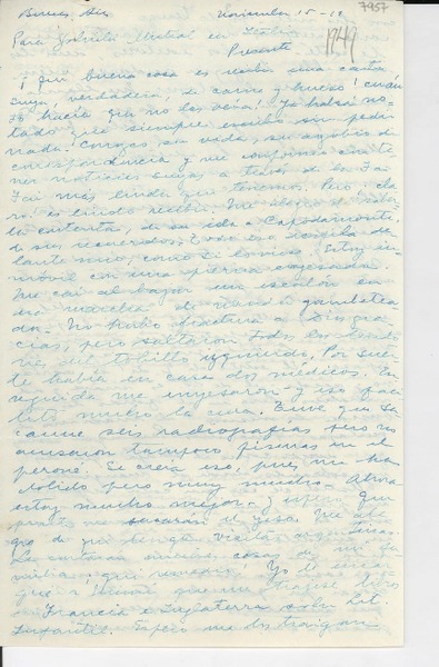 [Carta] 1944 nov. 7, Buenos Aires, [Argentina] [a] Palma [Guillén] [manuscrito] Martha S[alotti].