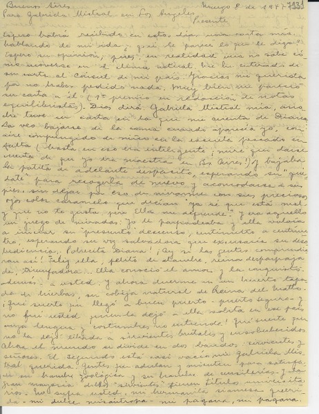 [Carta] 1941 mayo 15, Buenos Aires [a] Gabriela Mistral, Río de Janeiro [manuscrito] Martha [Salotti].