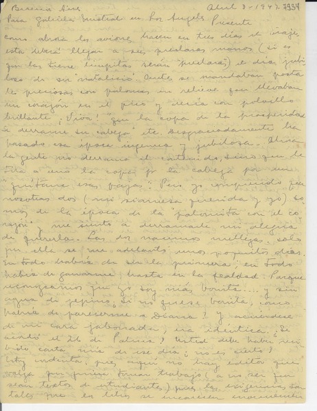 [Carta] 1947 abr. 3, Buenos Aires [a] Gabriela Mistral, Los Ángeles [manuscrito] Martha [Salotti].