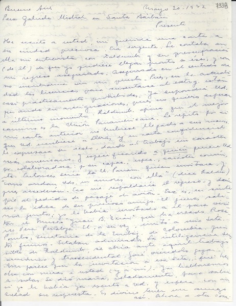[Carta] 1944 mar. 13, Buenos Aires, [Argentina] [a] Gabriela Mistral, Río, Brasil] [manuscrito] Martha [Salotti].