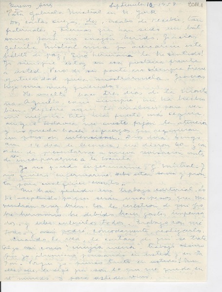 [Carta] 1953 sept. 12, Buenos Aires, [Argentina] [a] Gabriela Mistral, Nueva York, [EE.UU.] [manuscrito] Martha S[alotti].