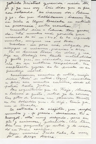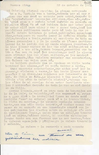 [Carta] 1954 oct. 22, Buenos Aires [a] Gabriela Mistral [manuscrito] Martha [Salotti].