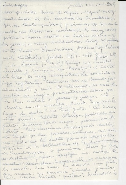[Carta] 1954 jun. 16, Filadelfia [a] Gabriela Mistral [manuscrito] Martha [Salotti].