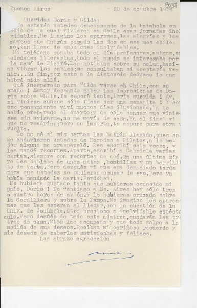 [Carta] 1954 oct. 20, Buenos Aires [a] Doris y Gilda [manuscrito] Martha [Salotti].