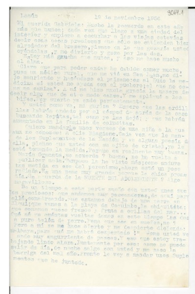 [Carta] 1956 nov. 19, Lanús, [Argentina] [a] Gabriela Mistral [manuscrito] Martha [Salotti].