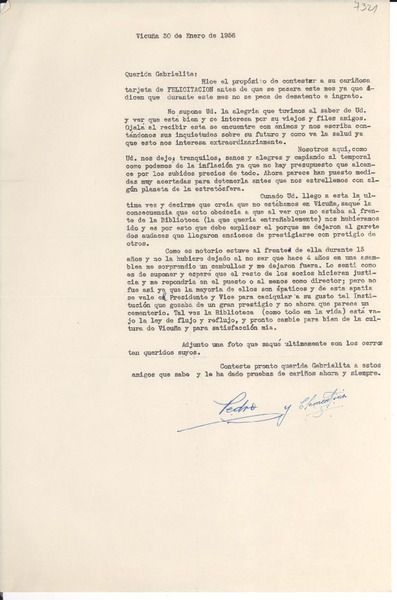 [Carta] 1936 ene. 21, Vicuña [Chile] [a] Gabriela Mistral, Lisboa [manuscrito] Pedro Moral.