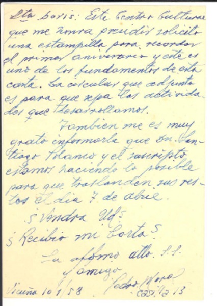 Moral, Pedro - Dana, Doris - Manuscritos chilenos - Correspondencia