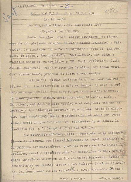 Obeili, Iñigo de - Correspondencia - Mistral, Gabriela - Manuscritos argentinos