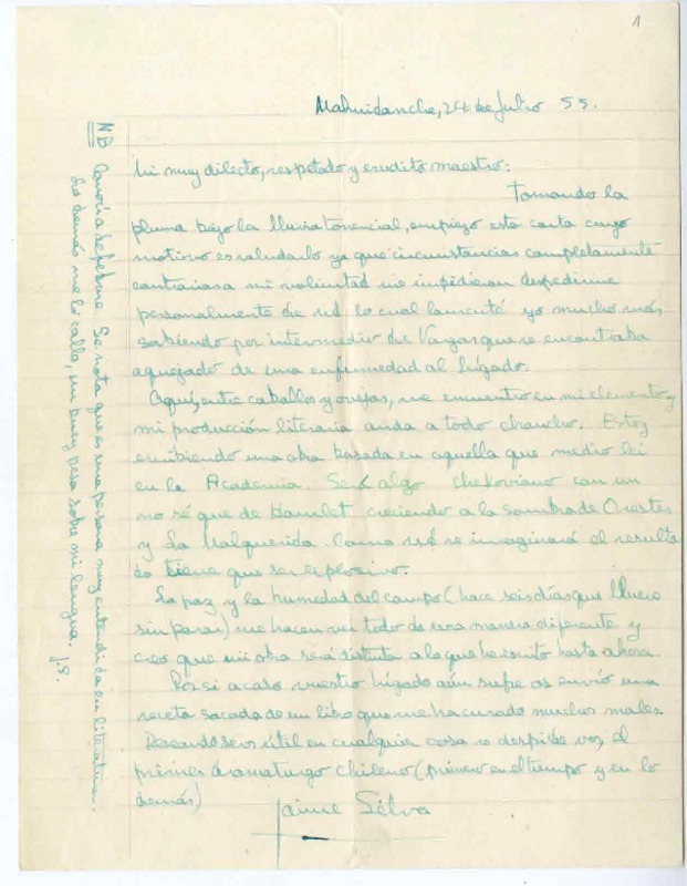 [Carta] 1909 marzo 21, Valparaíso, Chile [a] Biblioteca Nacional de Chile [manuscrito] Víctor Domingo Silva.