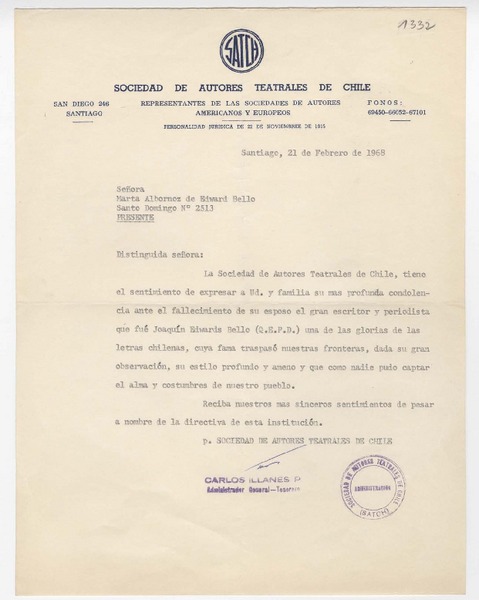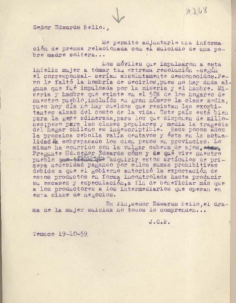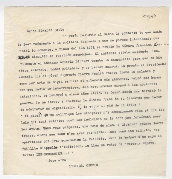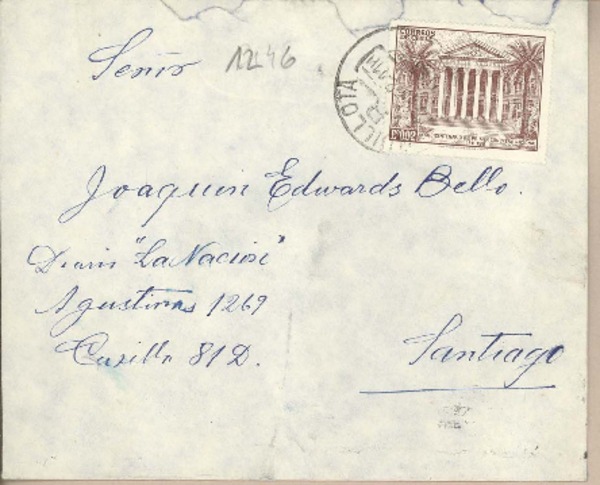 [Carta] 1956, [Santiago, Chile] [a] Joaquín Edwards Bello [manuscrito] Josefina Osorio.