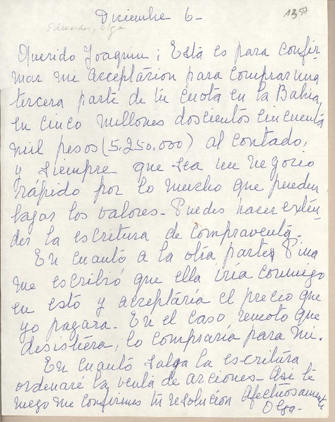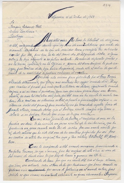 [Carta] 1959 diciembre 6, Santiago, [Chile] [a] Joaquín Edwards Bello [manuscrito] Olga Edwards.