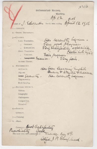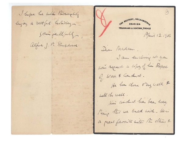 [Carta] 1906 abril 12, Sulhamstead, Inglaterra [al] Sr. Joaquín Edwards G. [manuscrito] Alfred Shepherd.