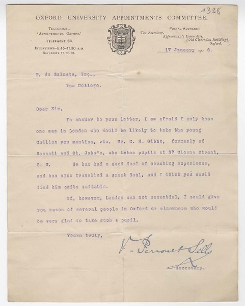 [Carta] 1906 junio 17, Londres, [Inglaterra] [a] F. de Zulueta [manuscrito] V. Perronet S.