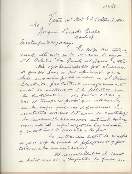 Edwards Bello, Joaquín - Autores chilenos - Alvarez González, Humberto - Manuscritos chilenos - Correspondencia