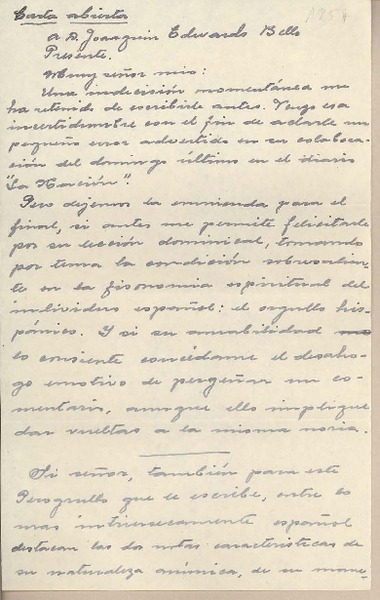 Edwards Bello, Joaquín - Romera, Antonio R. - Manuscritos chilenos - Autores chilenos - Correspondencia