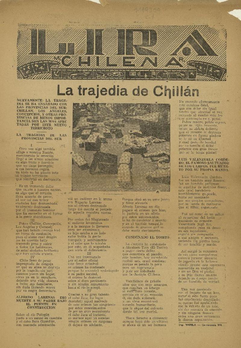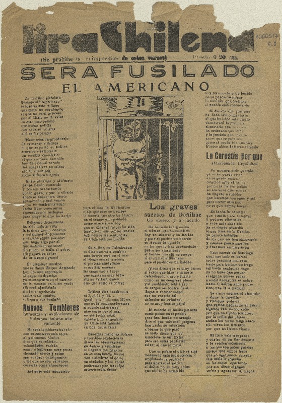El padre que ultimó al hijo en Rengo está condenado a muerte ; Testamento del infeliz fusilado Ismael Vergara, escrito en su calabozo Rosa Araneda.