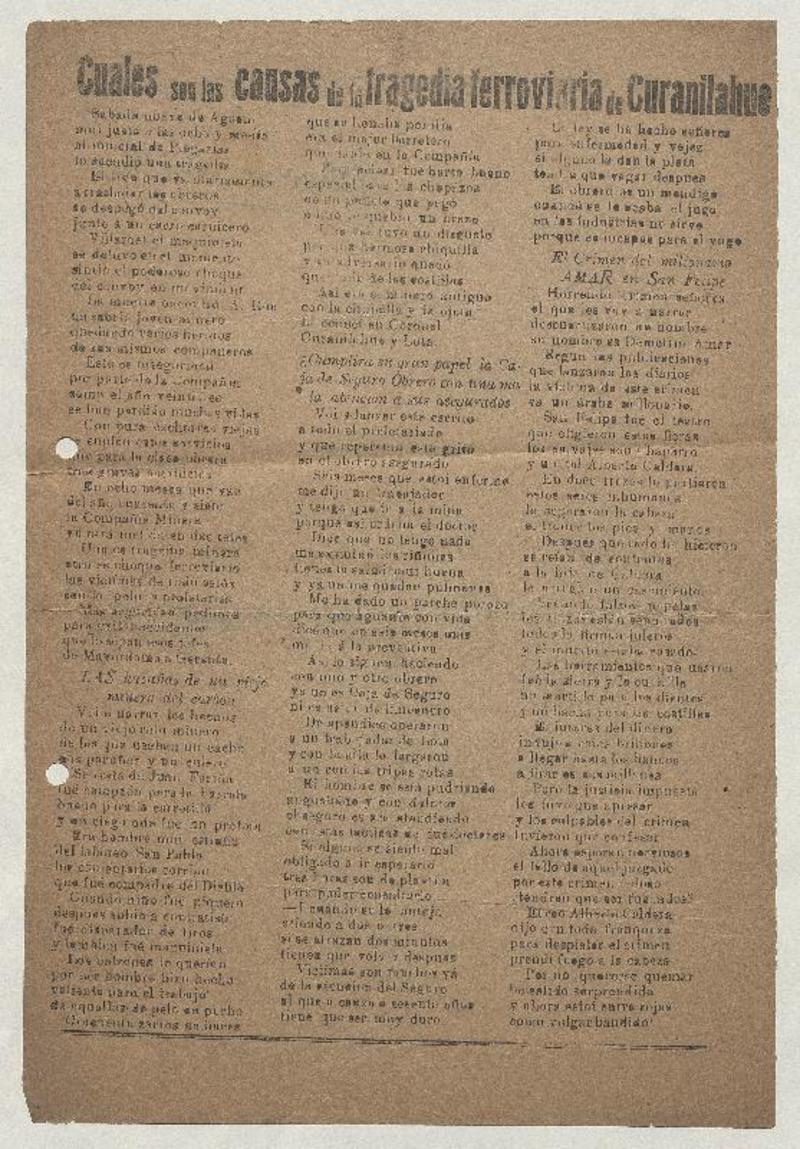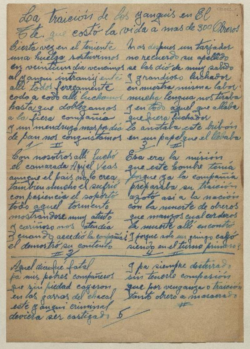 La traición de los yanquis en El Tte. que costó la vida a mas de 300 obreros [manuscrito]