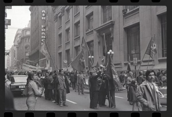 Manifestaciones políticas - Plaza Italia - Manifestaciones - Fotografías - Central Única de Trabajadores (Chile) - Sermena (Chile) - Televisión Nacional - Hospital de San Francisco de Borja (Santiago, Chile) - Palacio de La Moneda (Santiago, Chile) - Partidos políticos - Allende Gossens, Salvador - Partido Socialista (Chile)