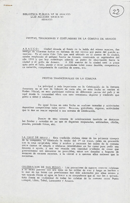 Fiestas, tradiciones y costumbres de la comuna de Arauco [manuscrito].