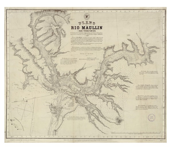 Plano del Río Maullín i sus tributarios [material cartográfico] formado por la Comisión esploradora de Chiloé i LLanquihue, bajo la Dirección del C. G. de Fta. Francisco Vidal Gormaz.