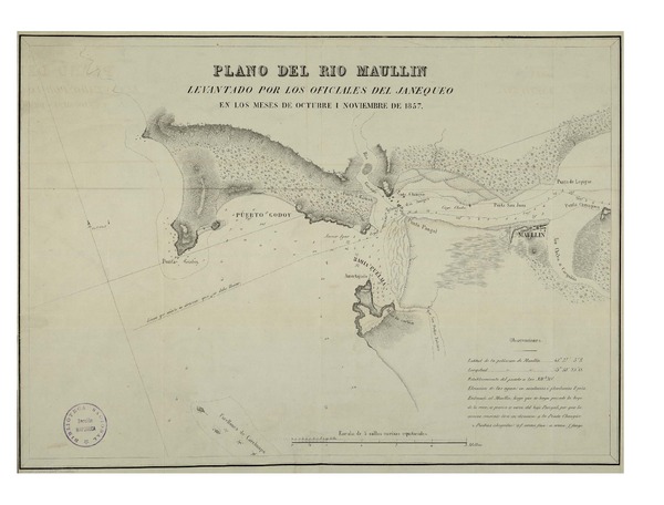 Plano del Río Maullín [material cartográfico] levantado por los oficiales del Janequeo, en los meses de octubre i noviembre de 1857.