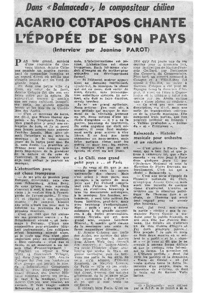 Entrevistas - Balmaceda - Cotapos, Acario - Compositores