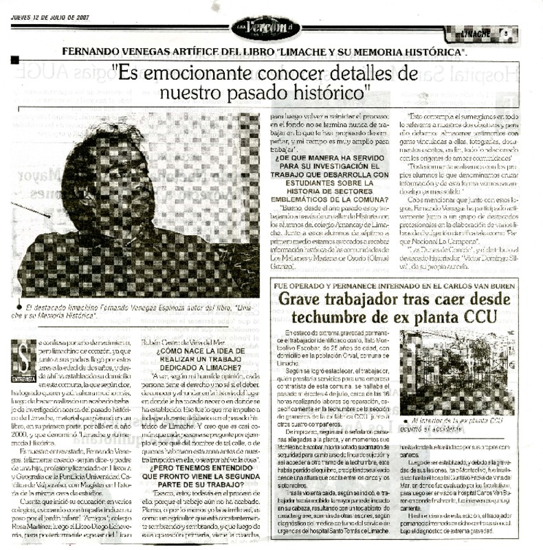Autores chilenos - Entrevistas - Venegas, Fernando - Limache y su memoria histórica