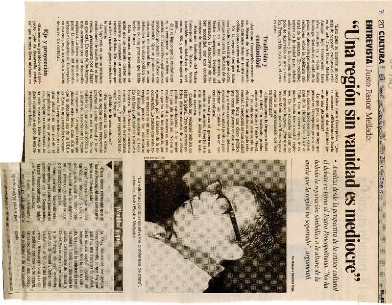 Entrevistas - Mellado, Justo Pastor - Teatro Pencopolitano (Concepción, Chile)