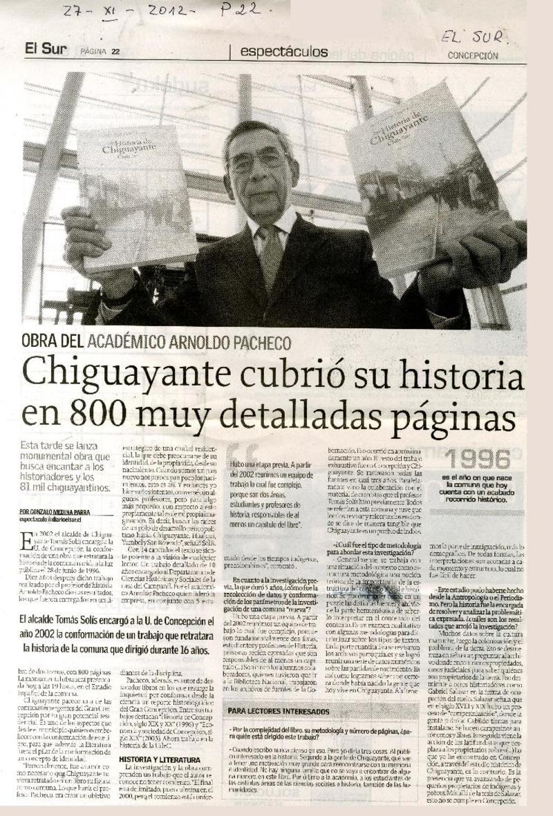 Chiguayante cubrió su historia en 800 muy detalladas páginas (entrevistas) [artículo] Gonzalo Medina Parra.