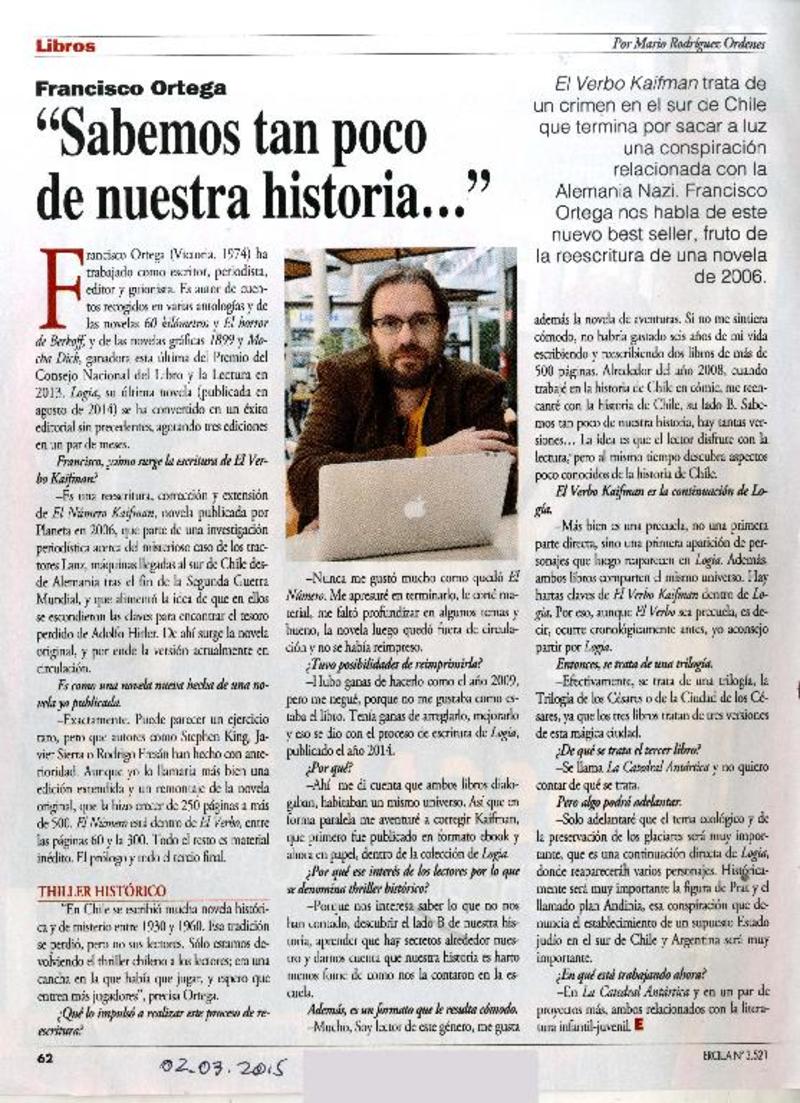 "Sabemos tan poco de nuestra historia..." [entrevista] [artículo] Mario Rodríguez Ordenes.