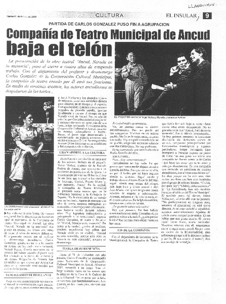 Compañía de teatro municipal de Ancud baja el telón [artículo]