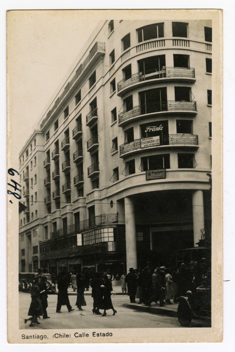 [Vista de edificio de la Bolsa de Comercio de Santiago y calles aledañas] [fotografía] Antonio Quintana.